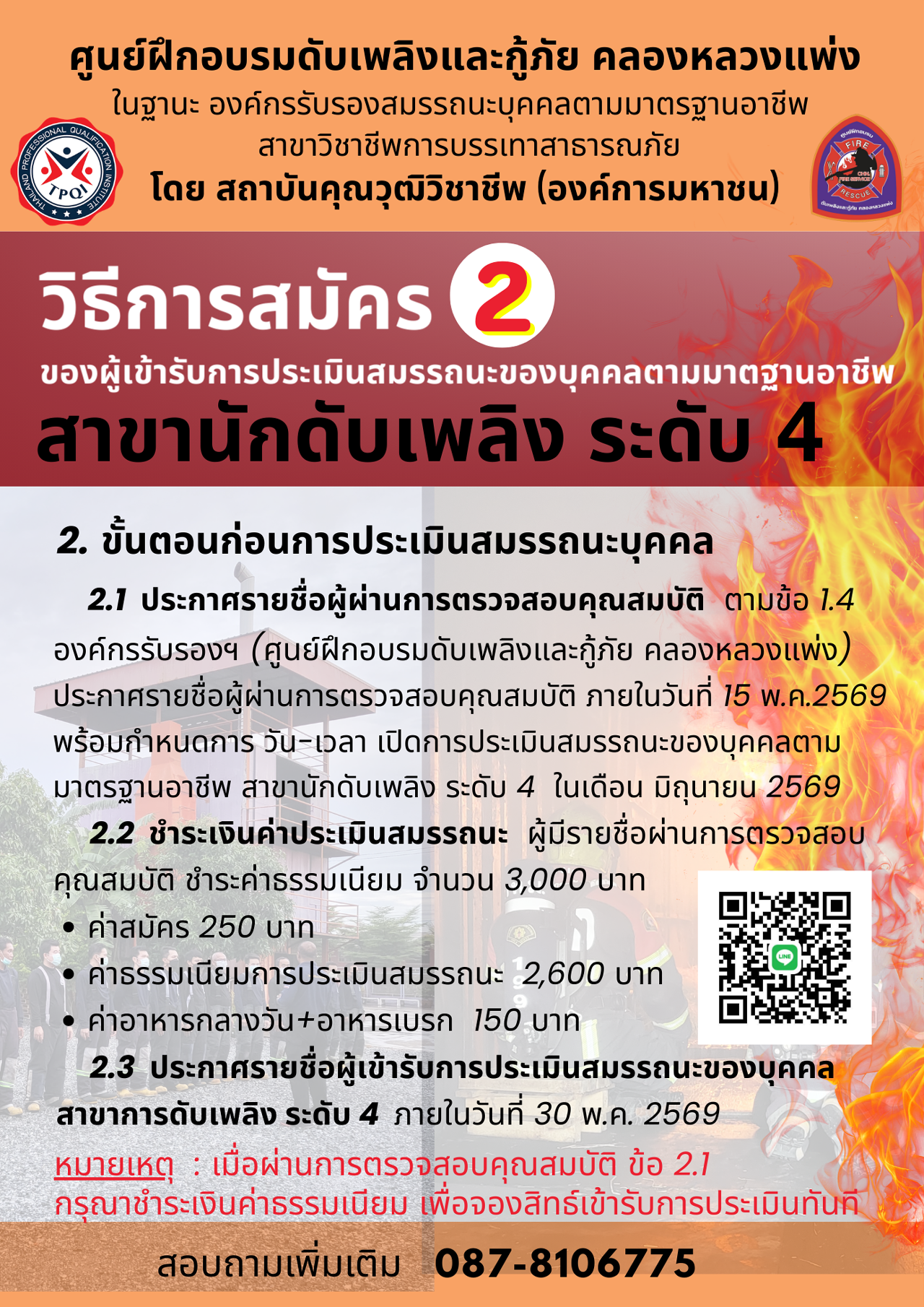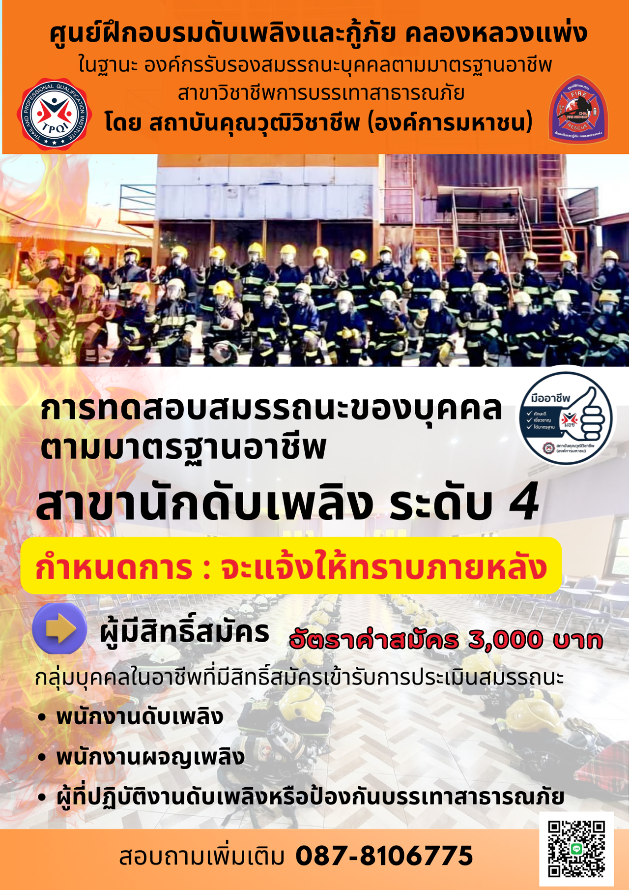 ในฐานะ : องค์กรรับรองสมรรถนะของบุคคลตามมาตรฐานอาชีพนักดับเพลิง